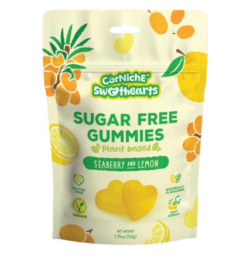 Savour guilt-free indulgence with soft and juicy CorNichE Sweethearts Sugar Free Gummies! These plant-based and gluten free gummies combine the sweet, tangy taste of the functional superberries, Haskap Berry and Seaberry, paired with four delicious natural flavours. Providing a healthier and more affordable option to traditional gummies, Corniche Sweethearts are rich in vitamins and antioxidants. Experience a delight in every bite.