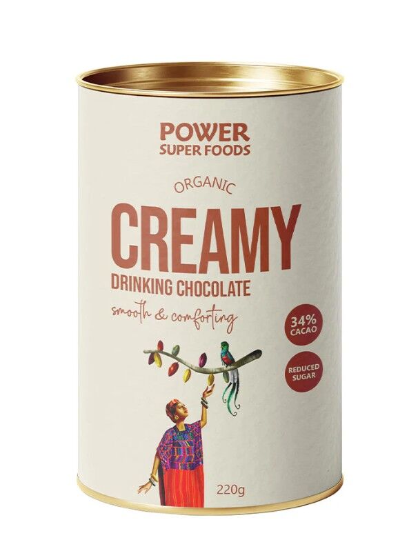 Creamy Drinking Chocolate is a delicious, creamy blend of rich organic cacao, blended with extraordinary superfoods including adaptogenic maca, naturally sweet lucuma, and sweetened with unrefined panela sugar. With up to 45% less sugar than leading conventional brands, Creamy is the perfect smooth, light and caramelly hot chocolate the whole family will love!