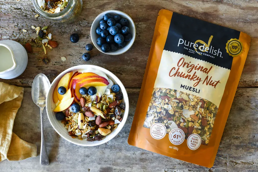Original Chunky Nut Muesli is a delicious mix of nuts, seeds and dried fruit with nutritious wholegrain oats. Drizzled with a little NZ Honey before being backed to perfection!