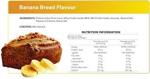 | Inredients | Prebiotic fibre (corn), Whey protein isolate, milk protein isolate, almonds, banana (4%), flavours, cinnamon, stevia, salt |