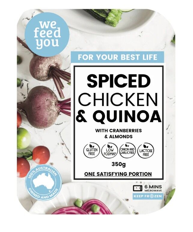 Slow-cooked chicken is combined with a delicate balance of saffron, fennel, spice mix and zucchini. This is then paired with spiced carrots and a wonderful mix of quinoa, roasted almonds, coriander and dried cranberries.
